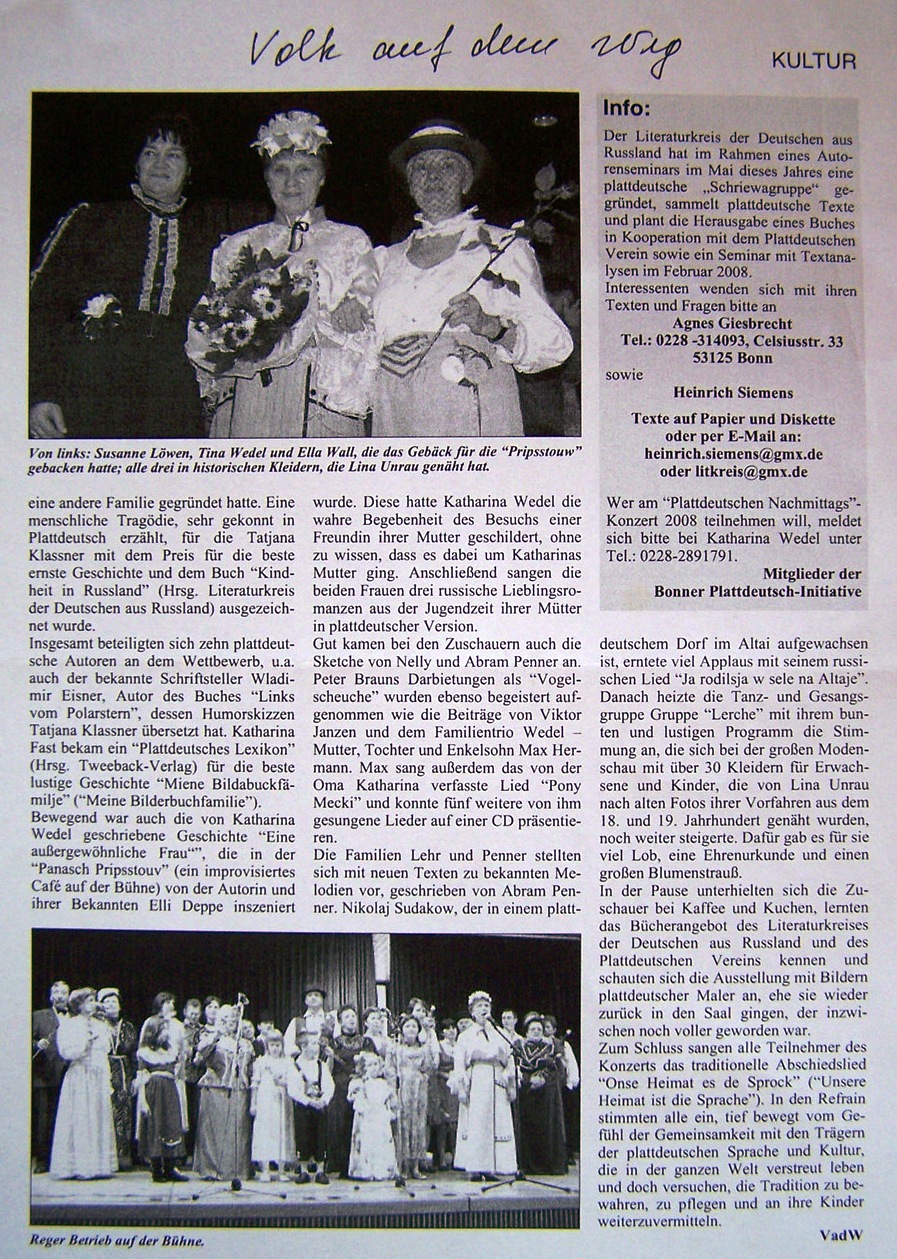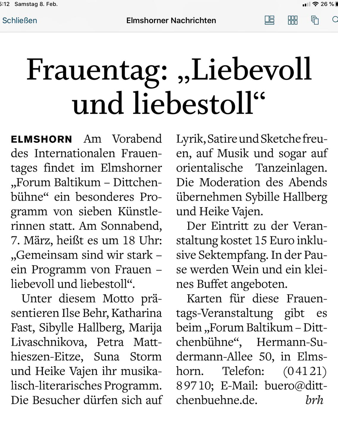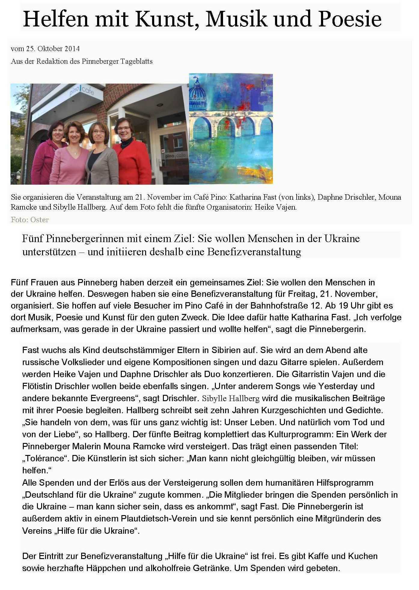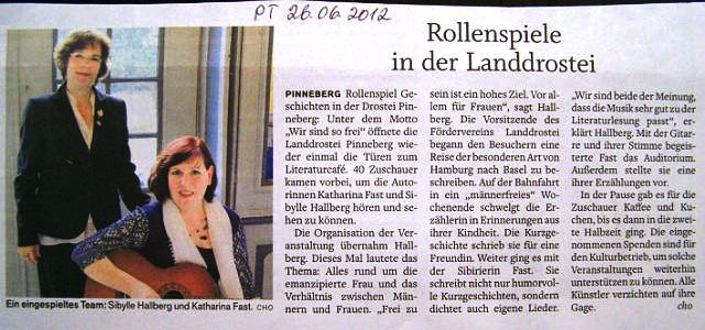 eindrucksvollen Liedern abrunden. Zu Gast ist die Pinneberger Künstlerin Gagel,
